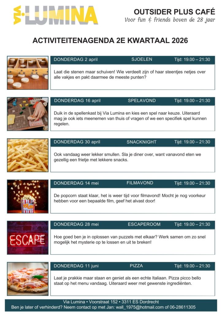 De vrijwilligers van Via Lumina runnen het Outsider Plus Café en zij leiden samen met de bezoekers de activiteiten in goede banen. Met elkaar worden de activiteiten gepland.